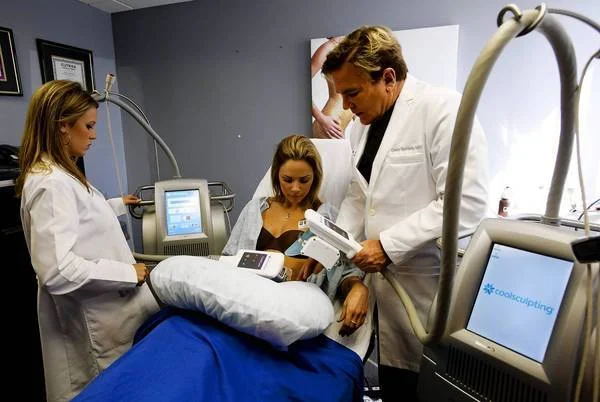 Dr. Grant Stevens and Laura Pietrzak demonstrate how Coolsculpting works on a client at The Institute at Marina Plastic Surgery in Marina del Rey.